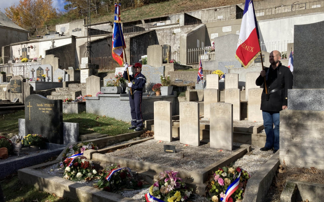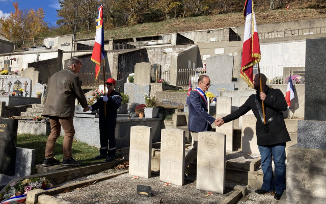 En effet, un hommage solennel en présence des autorités, du comité local du Souvenir Français, des représentants de la Sap d’Allex-Livron et de l’Ufac fut rendu aux sept aviateurs morts dans le crash de leur avion en novembre 1943, ainsi qu’à Eve Brough, veuve du rescapé du tragique accident qui dans ses dernières volontés souhaitait que ses cendres soient dispersées au côté de son époux qui repose dans notre carré militaire, depuis 1994.