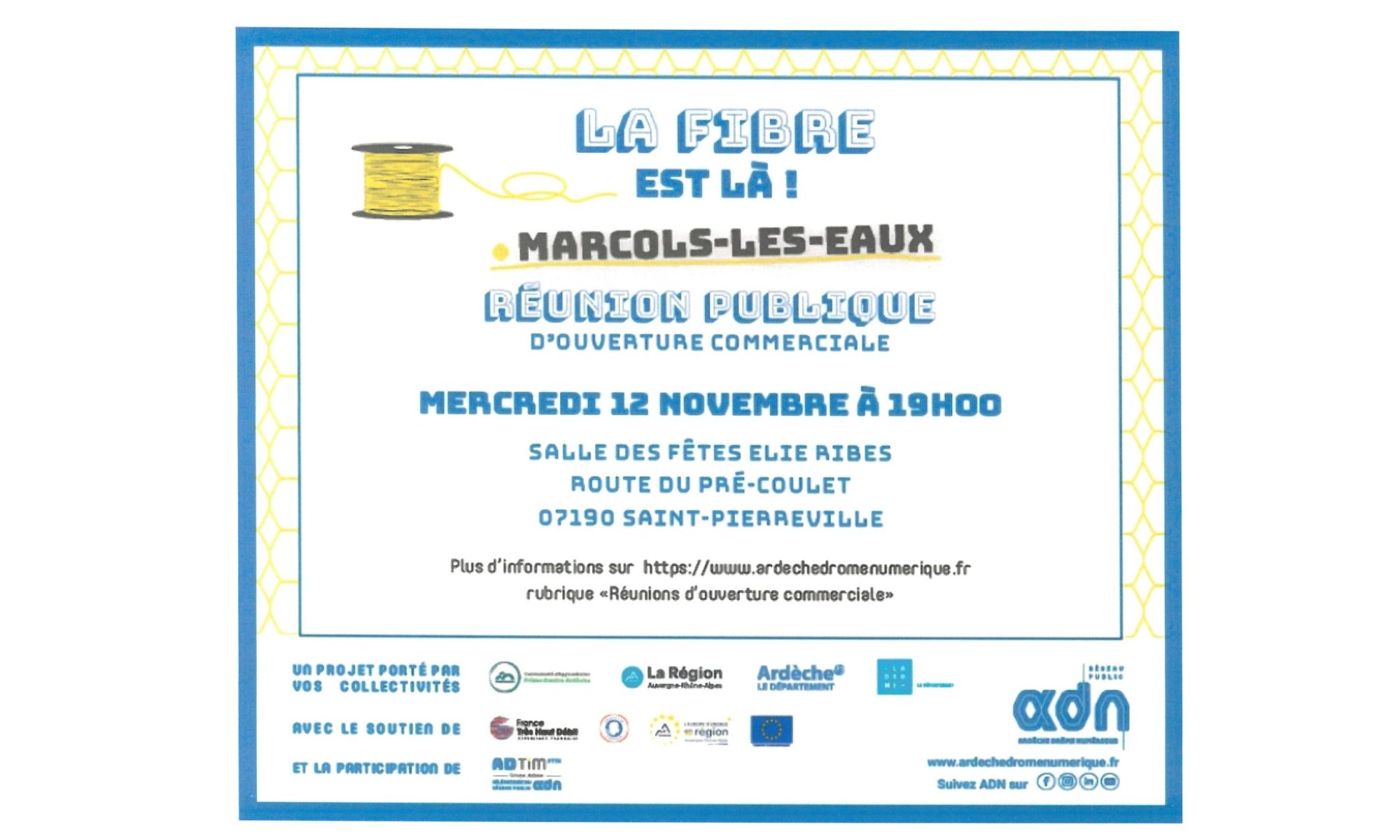 Afin de vous expliquer la démarche pour vous raccorder au réseau, quoi faire en cas d’inéligibilité le Syndicat mixte Ardèche Drôme Numérique et ADTIM FTTH, l’exploitant du réseau public organisent une réunion publique d’ouverture commerciale.
