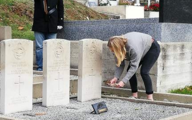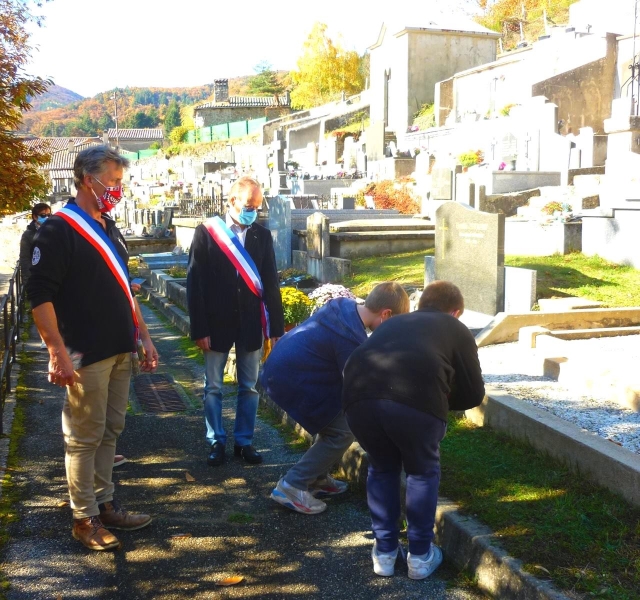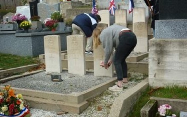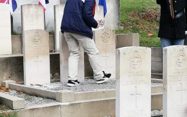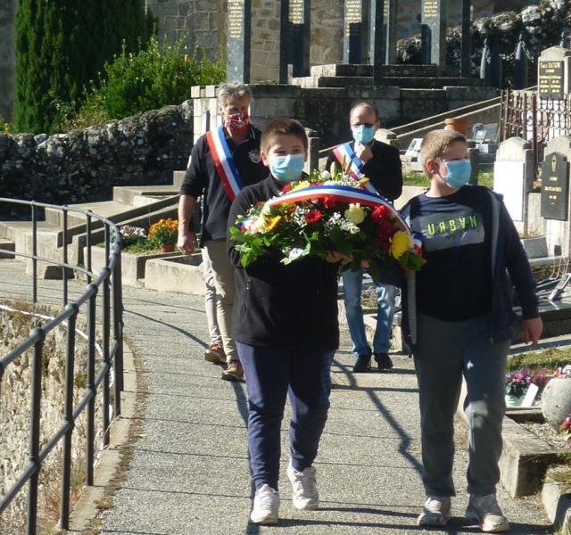 Nous nous  rendons au carré militaire de la Royale Air Force où trois jeunes Marcolais  déposent les croix du souvenir sur les tombes des aviateurs. Une gerbe au pied des stèles est posée par les autorités. L’appel aux morts, suivit d’une minute de silence et du Salut aux drapeaux clôturent cette journée d’hommage national, partagée avec émotion par de jeunes Marcolais :Linaelle, Quentin, Rémy, Camille, Samuel, Guyllaume et Elsa que nous remercions pour leur implication.